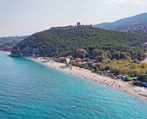 Στρίβοντας κανείς από την εθνική στο ύψος του κάστρου προς τα παράλια, φτάνει στην παραλία του Νέου Παντελεήμωνα.
